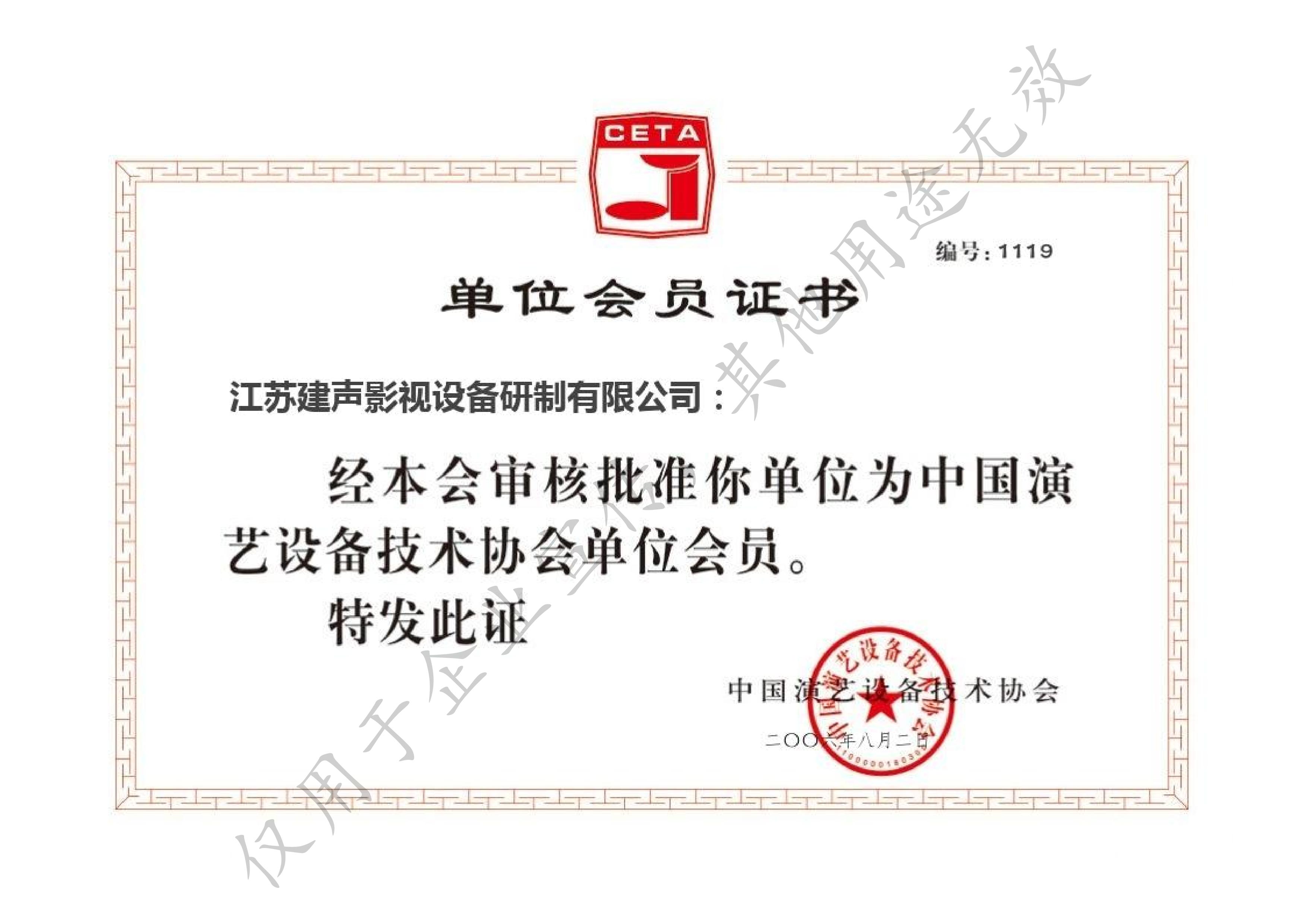 中国演艺设备技术协会会员证书