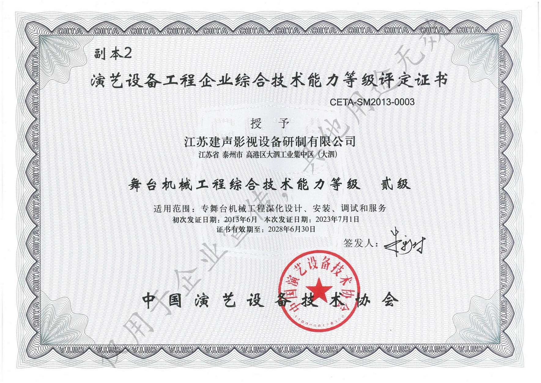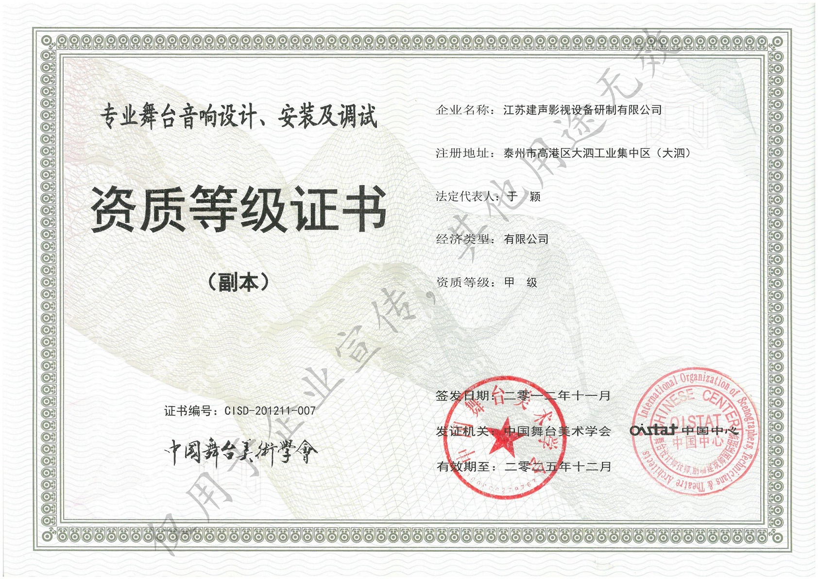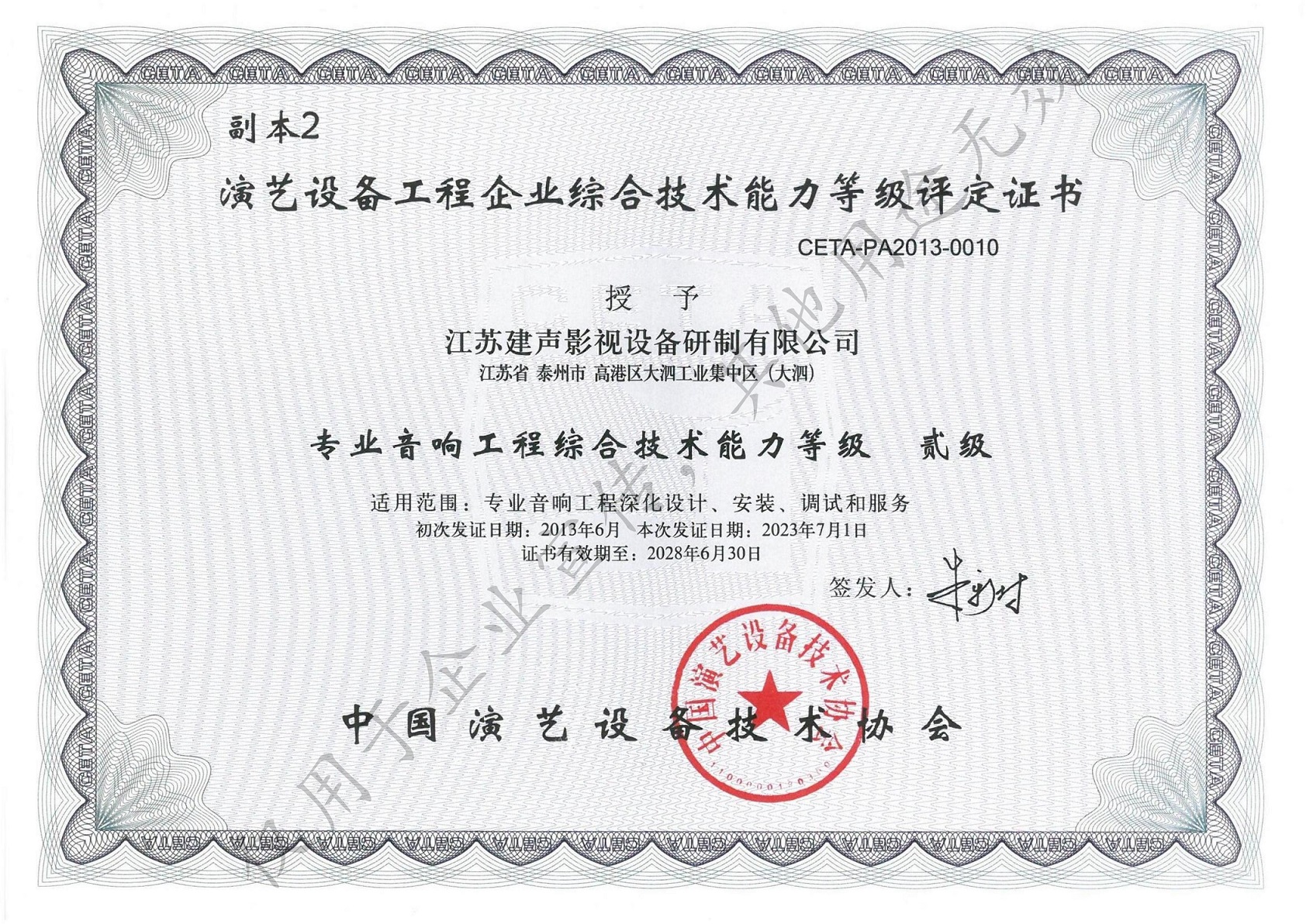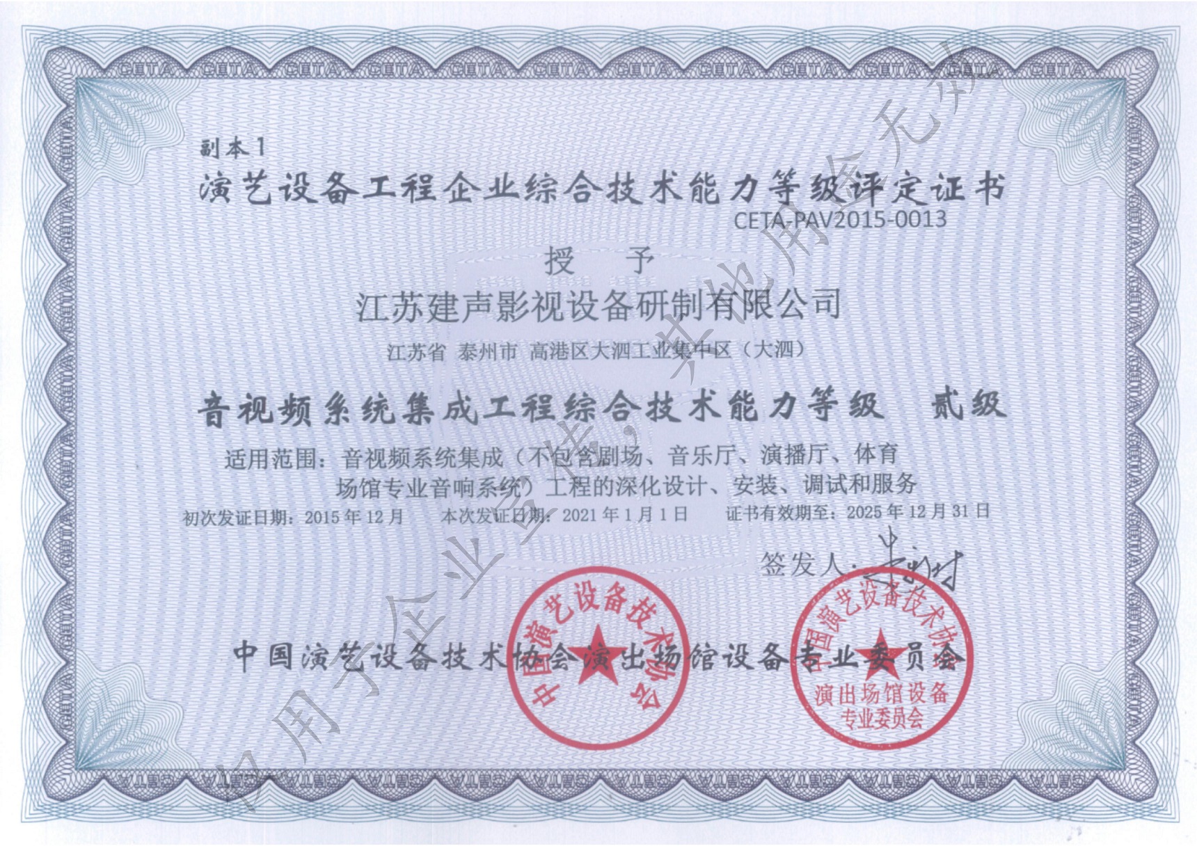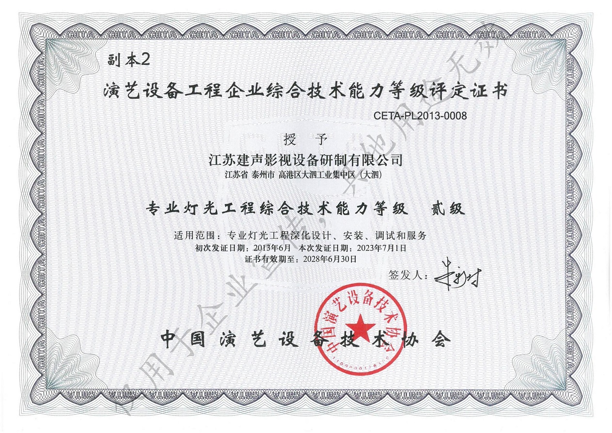 中国演艺设备技术协会专业等级证书