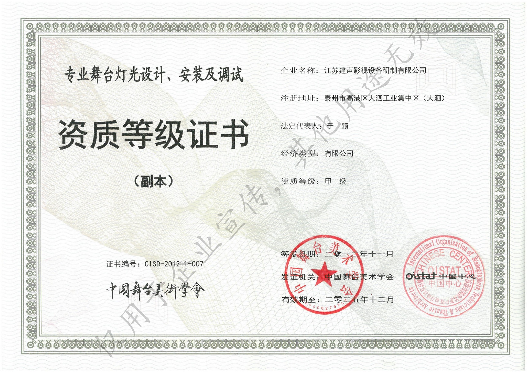 中国舞台美术学会资质证书