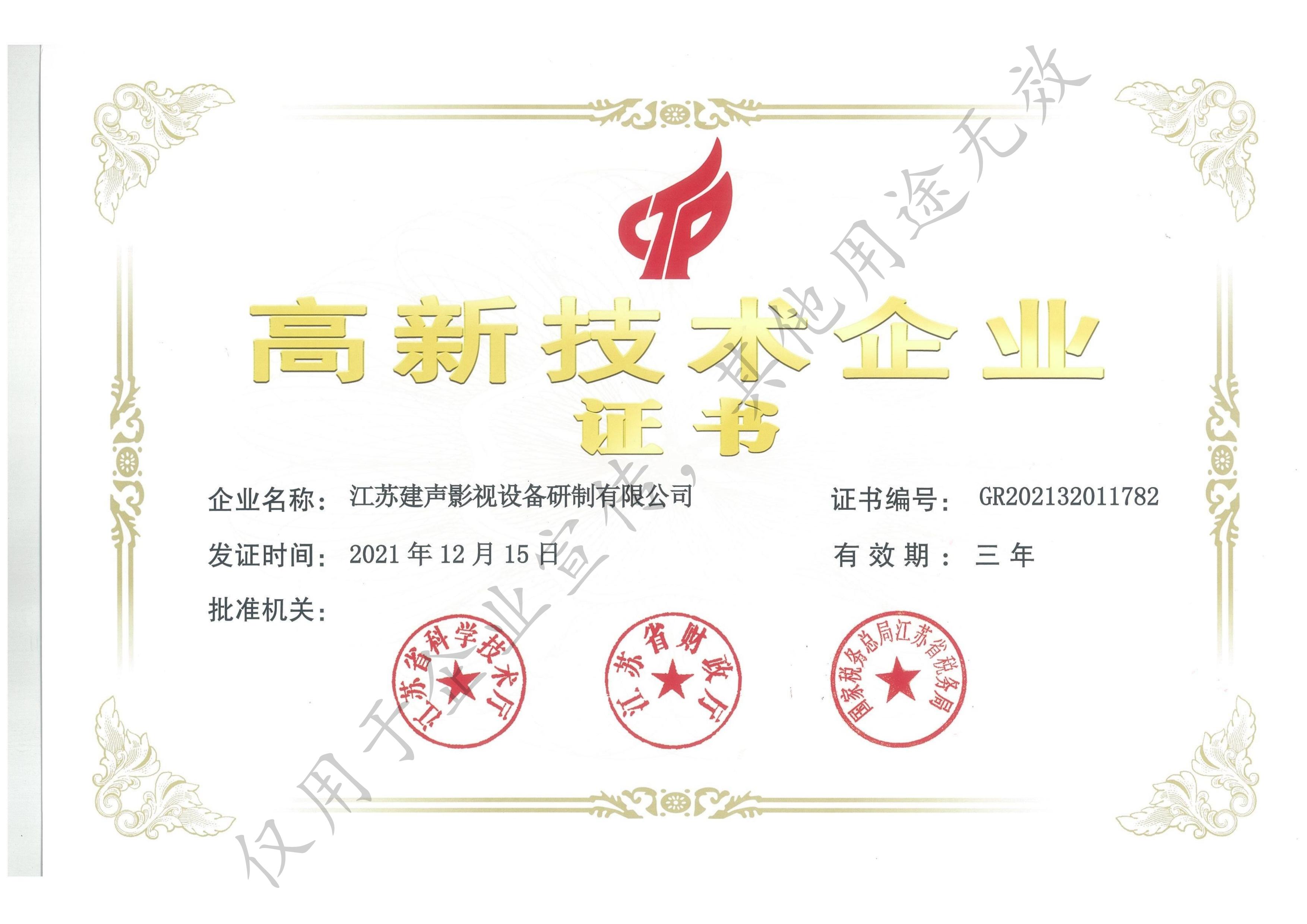 高新技术企业证书